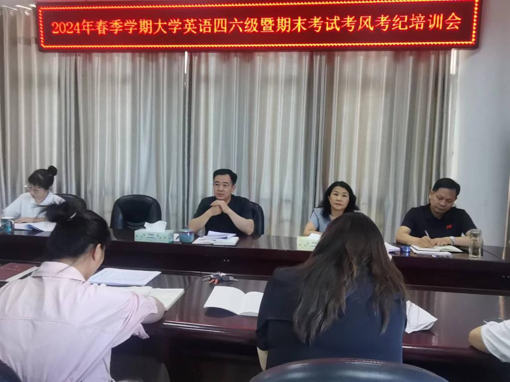 6月12日,kaiyun登录中国入口登录在逸夫楼302会议室召开全国大学英语四、六级考试暨期末考试考风考纪培训会。学院党委书记李舟、院长李保红、副书记付春锋、副院长姚光金、马晓欢、相关负责老师参加会议。会议由李保红主持。