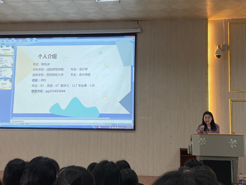 有希望在前方,为梦想而拼搏,是每个国教人的真实写照。4月16日下午三点kaiyun登录中国入口登录会计学、经济学考研经验交流会在人文楼报告厅举行,2018级、2019级500余名学生参加了此次活动,kaiyun登录中国入口登录党委副书记姚新春、班主任许孟杨、吴浩、王欣出席此次活动,交流会由沈艳霞主持。此次活动我们特别邀请2021年成功考取武汉理工大学常妍妍、中国地质大学洪瑶、哈尔滨工程大学刘晨煜和西安财经大学陈怡冰等四位学姐做经验交流。