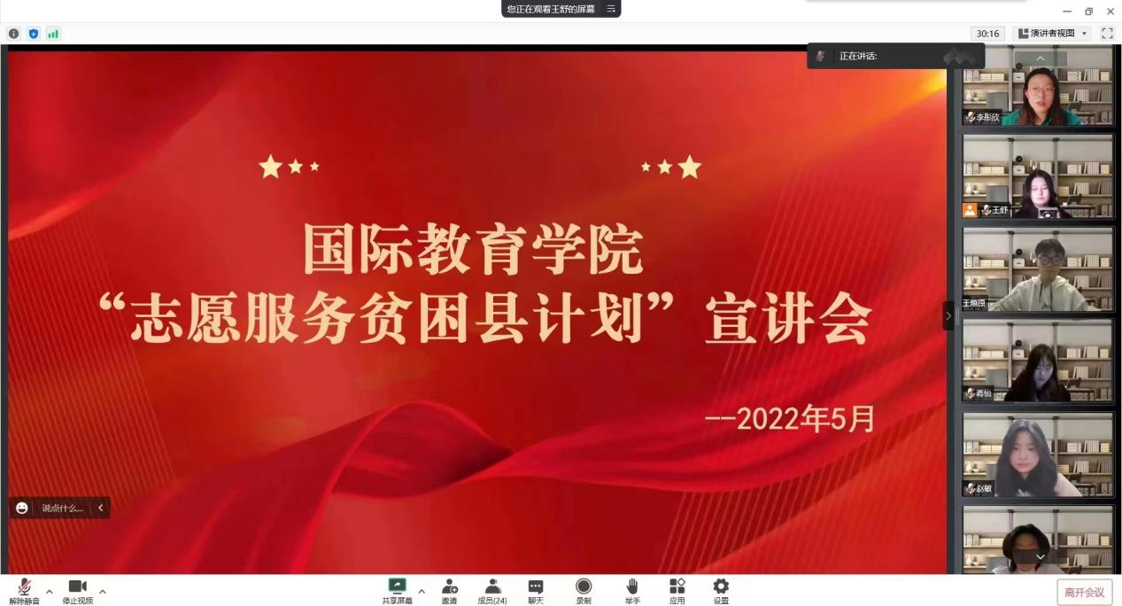 为让同学们更加深入了解“大学生志愿服务贫困县计划”,动员同学们积极投身于贫困县志愿服务工作。kaiyun官网于5月10日举行了“志愿服务贫困县计划”线上宣讲会。