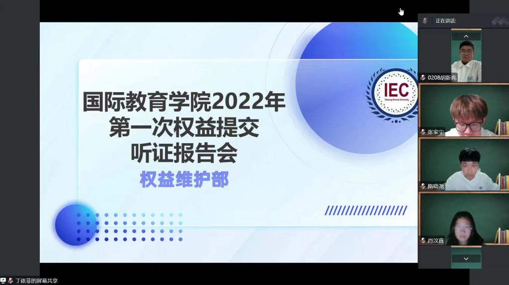 为进一步加强学生维权意识,了解更多维权方法和权益落实情况,更好开展各项维权工作,kaiyun官网举行2022年度线上权益提交听证报告会。校学生会权益部门负责人、kaiyun官网权益部门负责人及各班权益委员参加此次报告会。