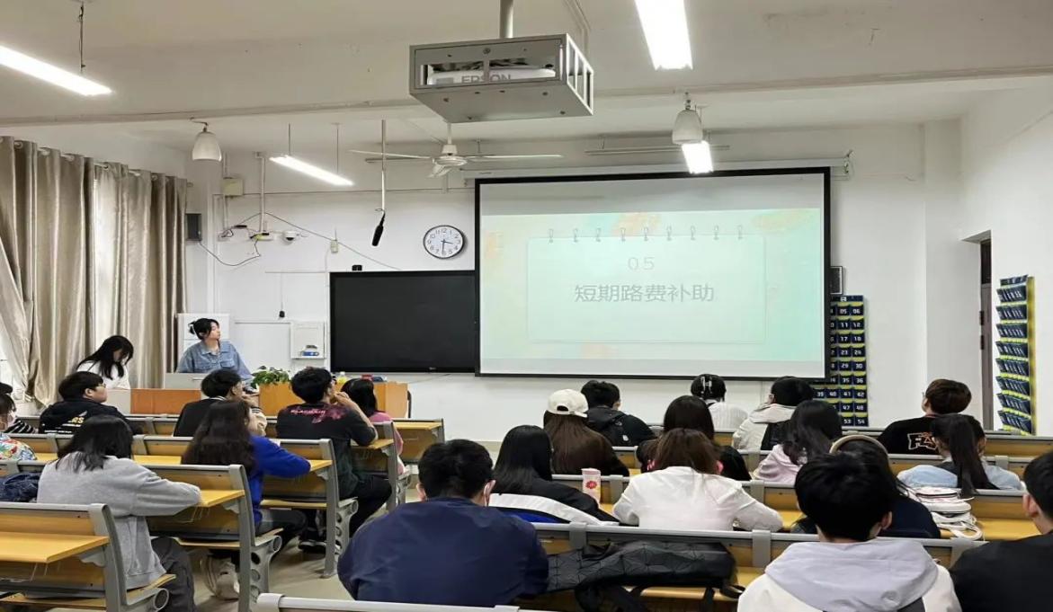 首先由助贷科干事蔡岩同学和李嘉琦同学向家庭经济困难学生宣传国家助学贷款及其他资助政策,普及征信、金融等相关知识;引导学生在申请国家助学贷款、国家助学金等国家各项资助项目时,恪守诚信,如实填报申请材料。之后,竹梅老师补充了一些资助工作开展过程中的相关注意事项,鼓励同学们秉持爱心,勇担责任,以细致端正的态度配合学院完成助贷工作。最后在提问环节,各资助委员依次提出资助工作中遇到的相关问题,竹梅老师为同学们进行了详细解答。
