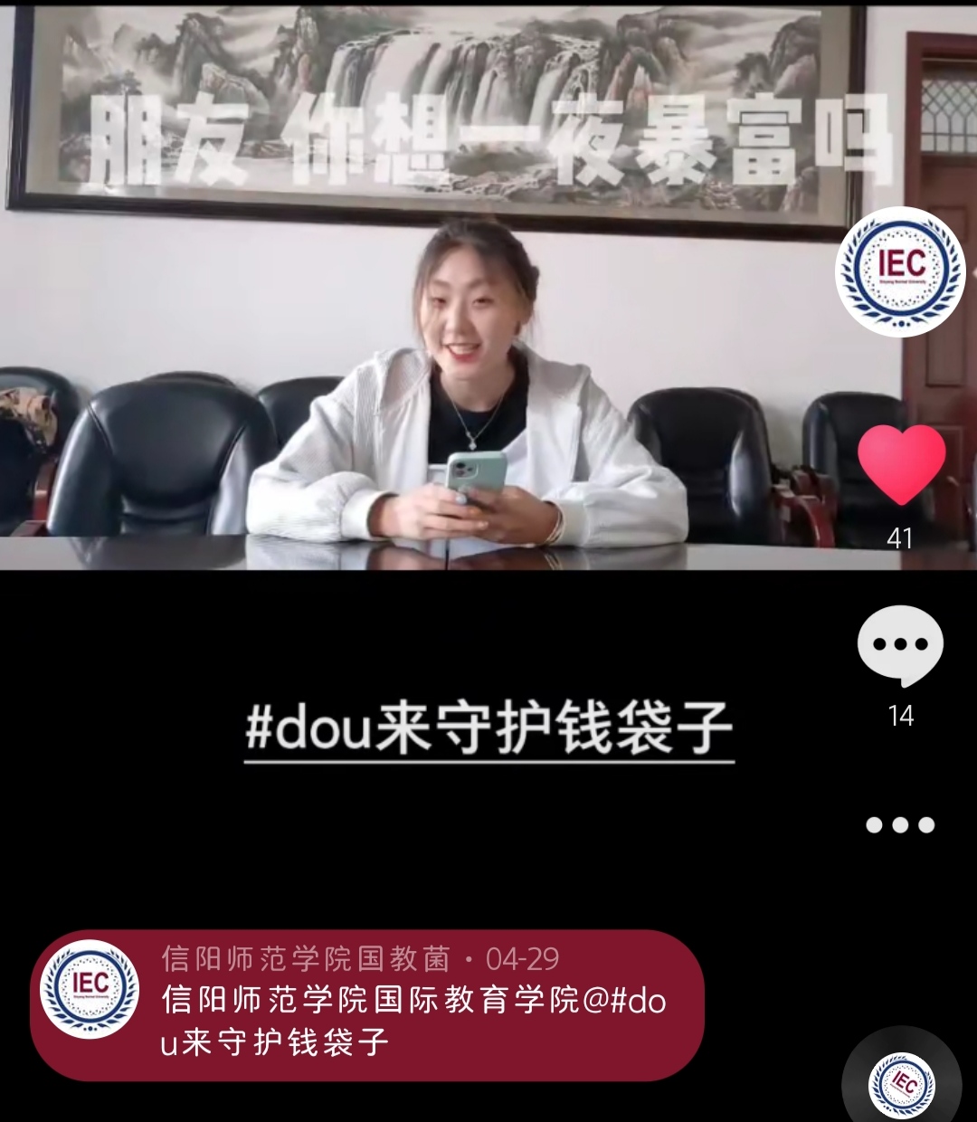 为加强金融知识学习教育,提升学生金融风险防范能力,帮助学生护好“钱袋子”,5月20日,kaiyun登录中国入口登录开展“守护钱袋子”金融知识宣讲活动,借助微信、抖音等新媒体平台向全院学生推广普及防范金融诈骗相关知识。