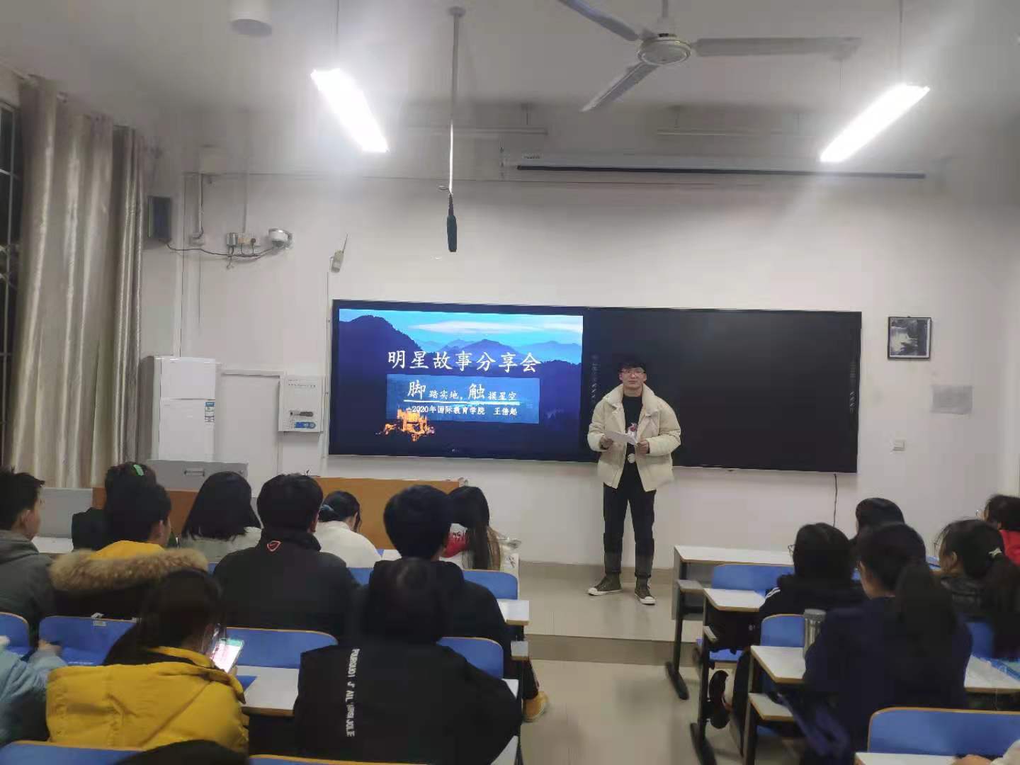 为帮助经济困难学生激发内生动力,明确奋斗目标、坚定理想信念、学会自强自立,2021年4月15日,kaiyun官网于逸夫楼209教室召开自强之星故事分享会,邀请“自强之星”王倍起为学生分享励志故事。