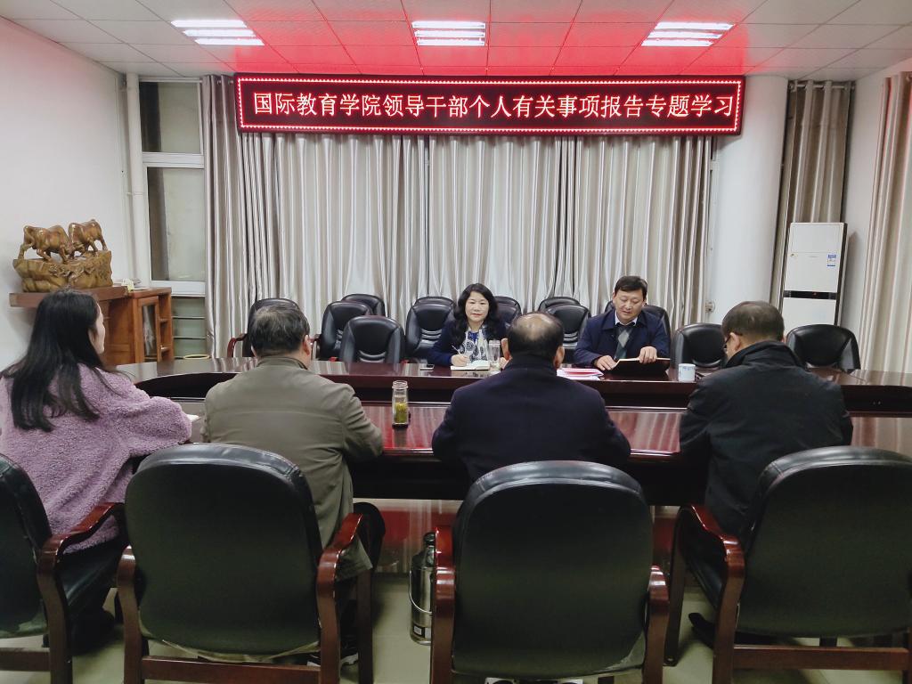12月23日,kaiyun登录中国入口登录在逸夫楼302会议室召开了处级领导干部个人有关事项报告专题学习会。学院全体领导班子成员参加。会议由学院党委书记张震主持。