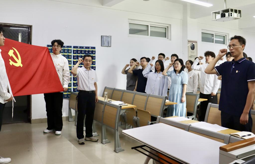 大会在庄严的《国际歌》中拉开帷幕。院党委副书记吕亚波宣读了2025年上半年接收预备党员名单,随后,院党委书记李舟领导全体党员面向党旗进行了庄严宣誓。预备党员代表王安苒在发言中表达了加入党组织的激动之情,承诺将以实际行动践行党员使命。老党员代表朱晨曦结合自身经历,勉励新党员牢记入党誓词,终身坚守信仰。