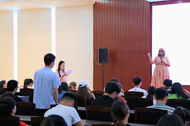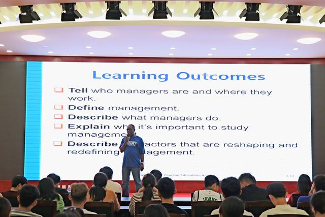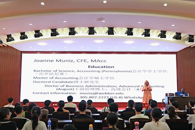 下午2:30在艺术楼报告厅举行了专题报告会,期间座无虚席,学生热情高涨,专心听讲。kaiyun登录中国入口登录副院长芦永德做开场致辞。稍后Fening教授就什么是管理、管理的4大功能以及为什么要学管理等问题用贴近生活的案例做了详实说明;Joanne教授做简要自我介绍,并介绍韦伯大学的课程设置、优势及会计学的从业前景,在座同学受益匪浅。