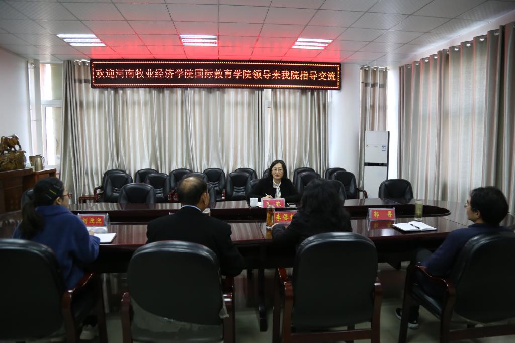 11月7日,河南牧业经济学院kaiyun登录中国入口登录院长高敏来kaiyun官网交流考察中外合作办学工作。kaiyun登录中国入口登录院长李保红、副院长何英干及教学部、办公室负责人参加交流座谈会。会议由李保红主持。