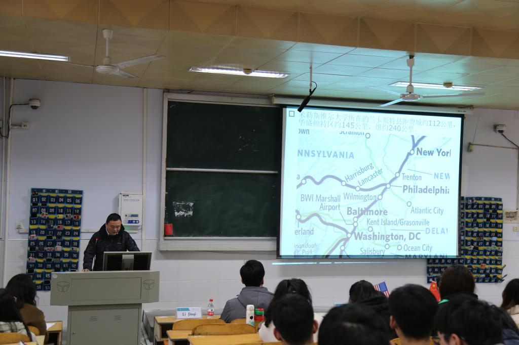 方晓波、俞彤辉教授分享了各自在美国米勒斯维尔大学的访学和生活经历。方晓波介绍了美国米勒斯维尔大学的课程设置、教学模式、成绩评价模式等。俞彤辉就如何适应美国大学生活做了精彩分享。他们充实有趣的访学生活,幽默风趣的讲解风格赢得同学们掌声不断、笑声连连,进一步激发了学生们对美国留学生活的兴趣。