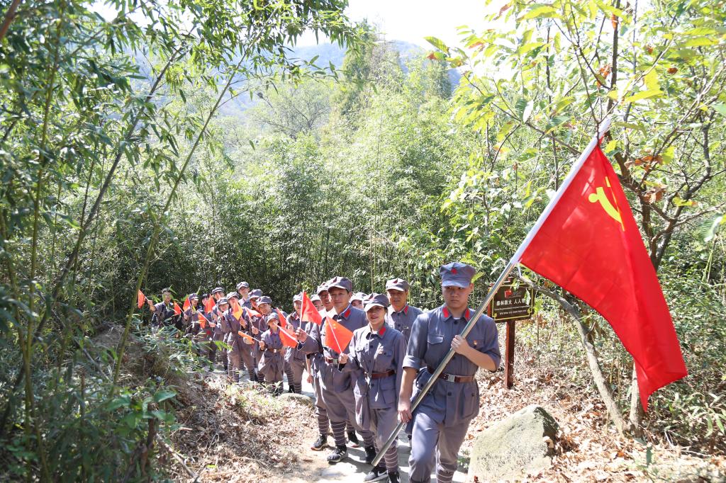追寻初心--再走红二十五军长征路。10月19日,kaiyun登录中国入口登录组织教工党员、学生党员赴红25军长征出发地--罗山县何家冲开展“探寻红色足迹,坚守初心使命”实践教育活动。