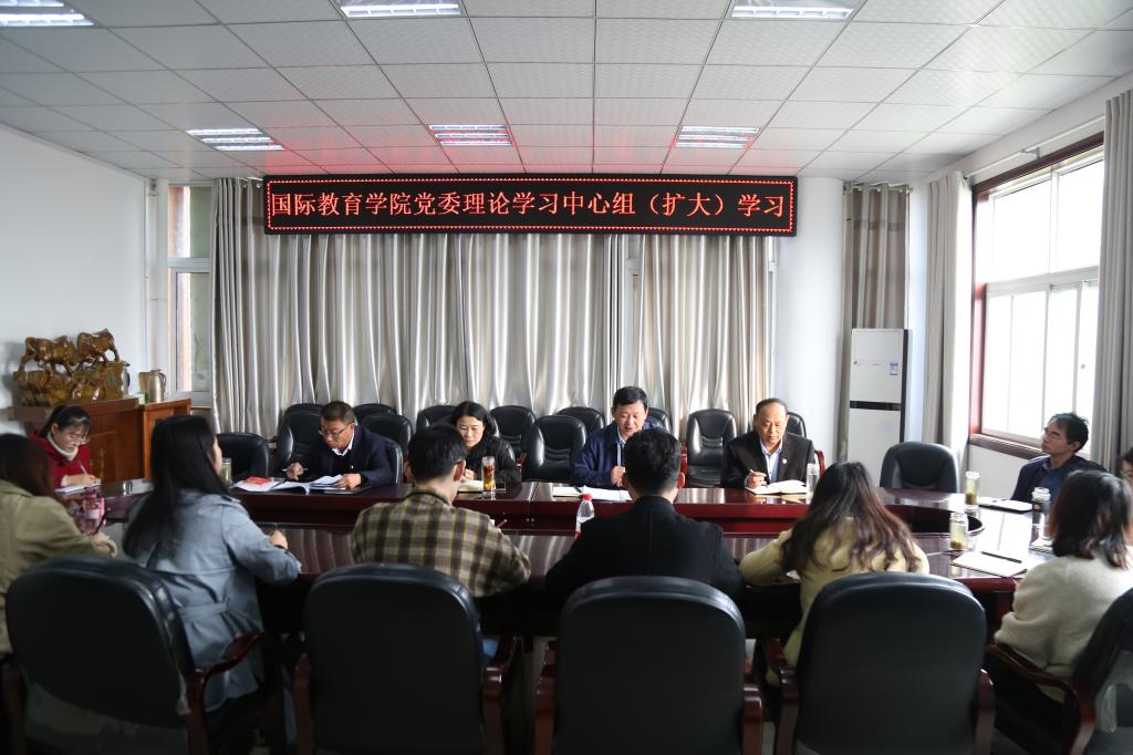 学院党委书记张震系统解读了党的十九届四中全会精神,介绍了党的十九届四中全会召开的背景地位以及重要意义。他强调,要把学习贯彻党的十九届四中全会精神作为当前一个时期的重大政治任务,并对学院深入学习宣传贯彻全会精神提出了明确要求。一是要聚焦主题学,结合“不忘初心、牢记使命”主题教育,与持续加强本单位制度建设相结合,切实扛起中外合作办学立德树人的根本任务,为党育人、为国育才;二是要动员全体师生学,通过支部、班级、社团等组织,层层动员,组织全体师生认真学习,细致研读,将全会精神传达到每一个支部、每一名师生,坚定制度自信;三是拓展形式学,拓展学习载体,充分利用学院网站,微博、微信等新媒体平台,以及LED电子屏、宣传栏等载体,广泛宣传全会精神和学习贯彻情况,营造浓郁的学习宣传氛围
