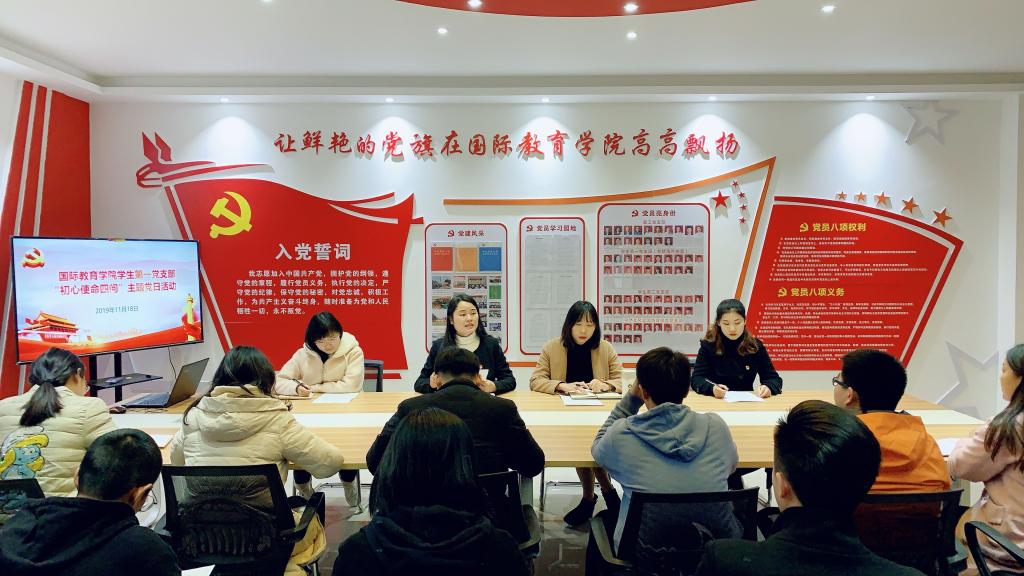 11月18日下午,kaiyun登录中国入口登录学生第一党支部在学院党员之家开展“初心使命四问”主题党日活动。