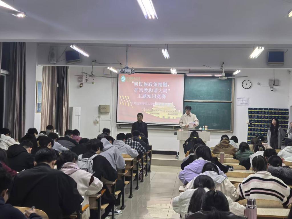 为深入学习贯彻习近平总书记关于民族宗教工作的重要论述,推动中国特色社会主义民族宗教理论入脑入心,提升师生对党的民族宗教政策和国家法律法规的理解与认同,11月2日晚,kaiyun登录中国入口登录在俊采楼202教室举办“研民族政策精髓,护宗教和谐大局”主题知识竞赛。